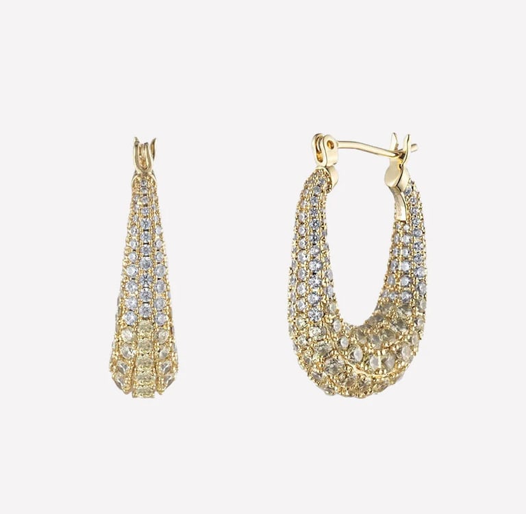 Swarovski crystal nickel-free hoop earrings that hug close to the earlobe. The chunky profile feels substantial and current, whilst the huggie style prevents catching on clothing.