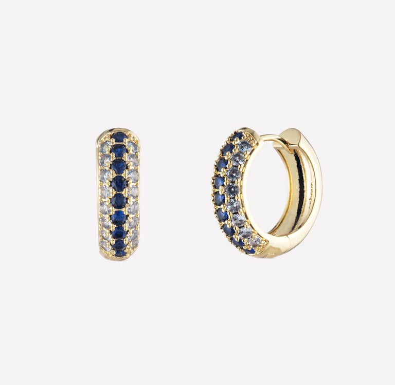 These blue Swarovski crystal thick hoop earrings provide slightly more presence without crossing into statement territory. The chunky profile feels substantial and modern, whilst crystal embellishments add refined sparkle.